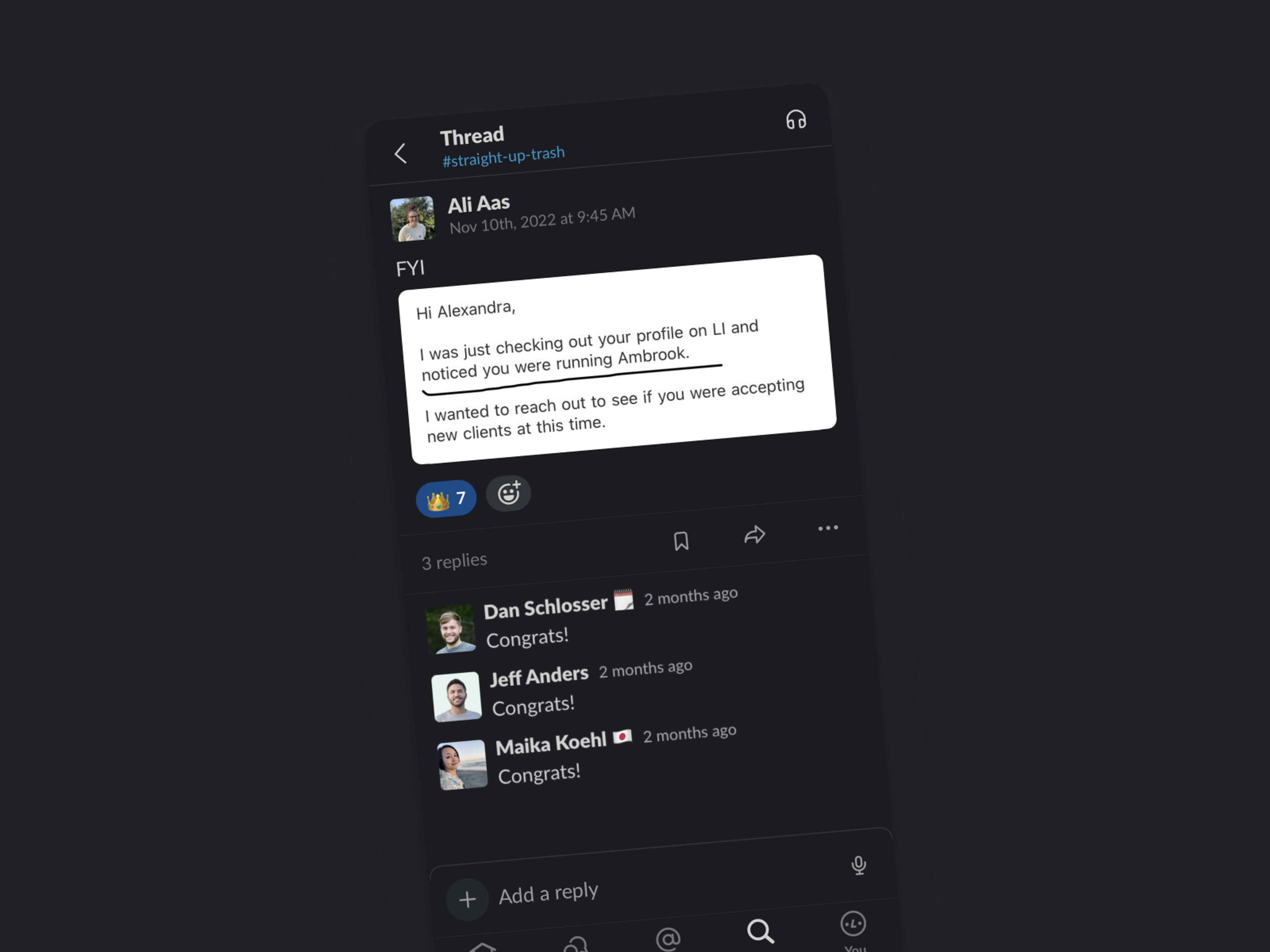 The most intentional remote workplace I’d found. The heated debate around whether remote works or not always makes me laugh, because of course a company that isn’t designed to be distributed won’t succeed versus its in-person counterparts. Ambrook traded an office lease and shared time zones for quarterly retreats, a ruthless bar for what can’t be completed asynchronously, and an earnest desire to bring work relationships beyond transactional.