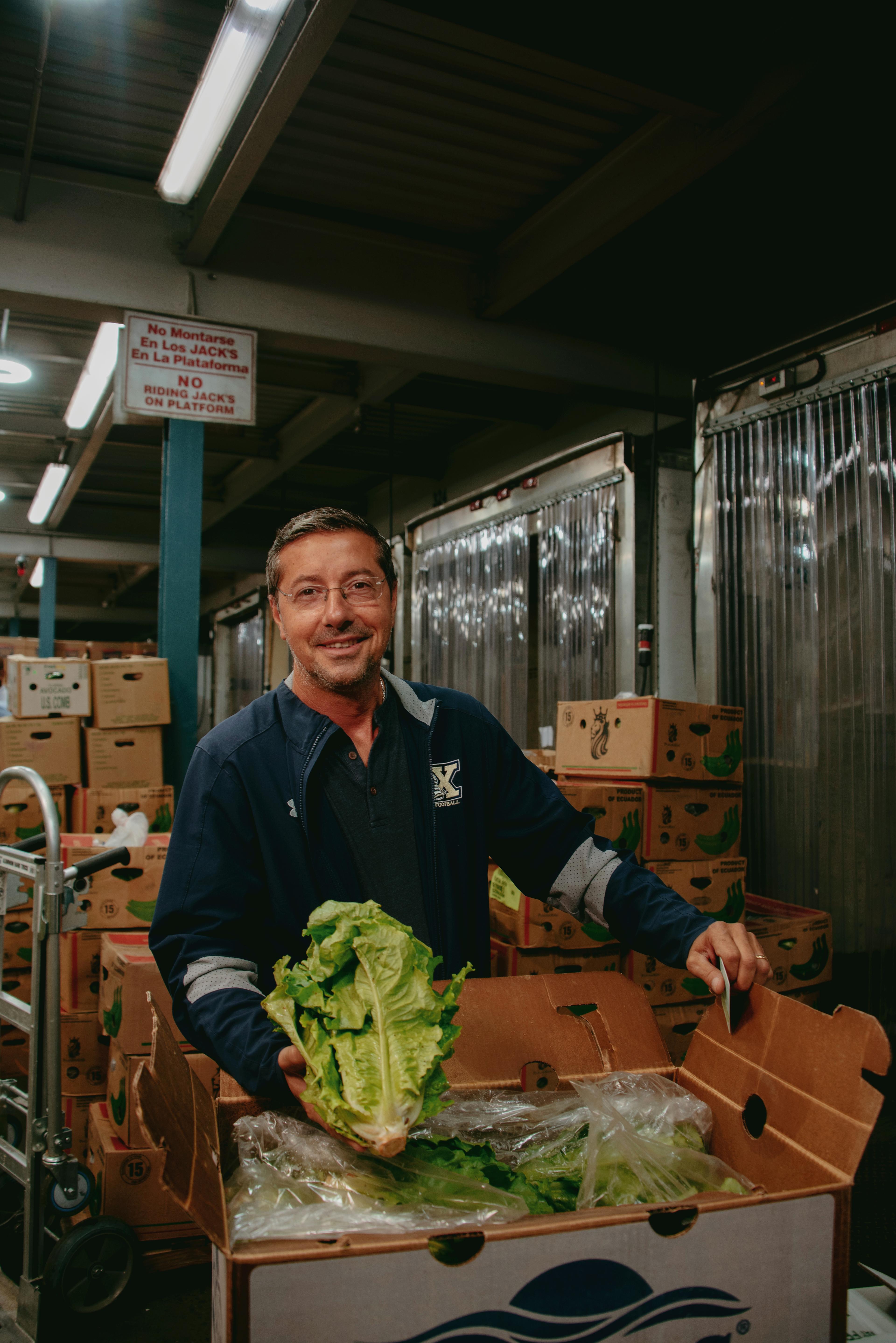 On B Deck, I meet Tony LoVerde, an older, gray-haired man in glasses, perusing cartons of romaine.