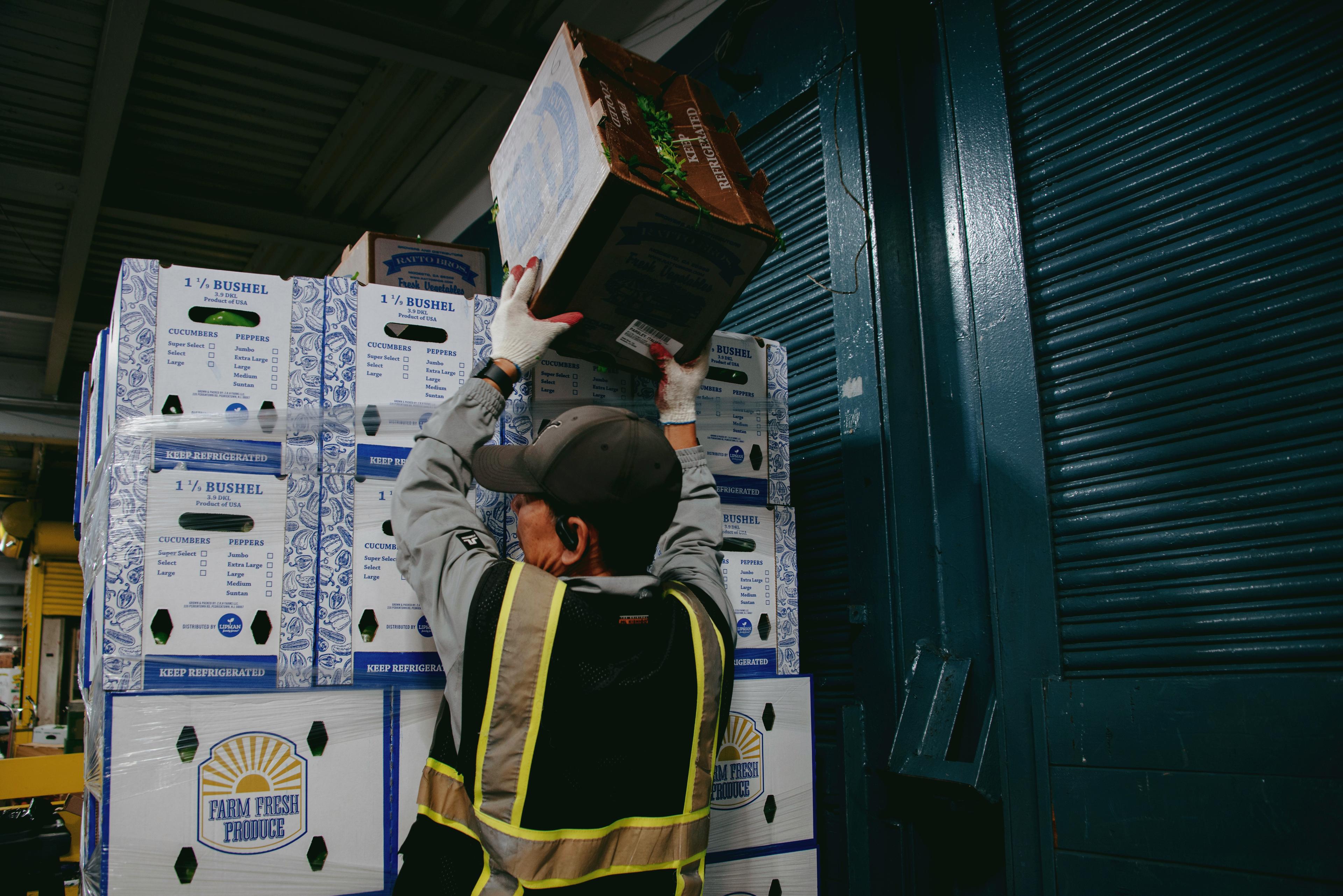 The platform — it couldn’t be much more than 20 feet wide — is where the action happens. As we walk its length, many thousands of pounds of produce of varying perishability criss-cross in front of us, from fragile raspberries and strawberries in plastic clamshells to 50-pound sacks of hardy California walnuts. Workers push pallet jacks loaded high with cardboard boxes of Van Gogh mangoes (“Nature’s Masterpiece”) and Honeyglow pineapples; they drive forklifts bearing crates of fresh corn, leaving a breadcrumb trail of crushed ice.