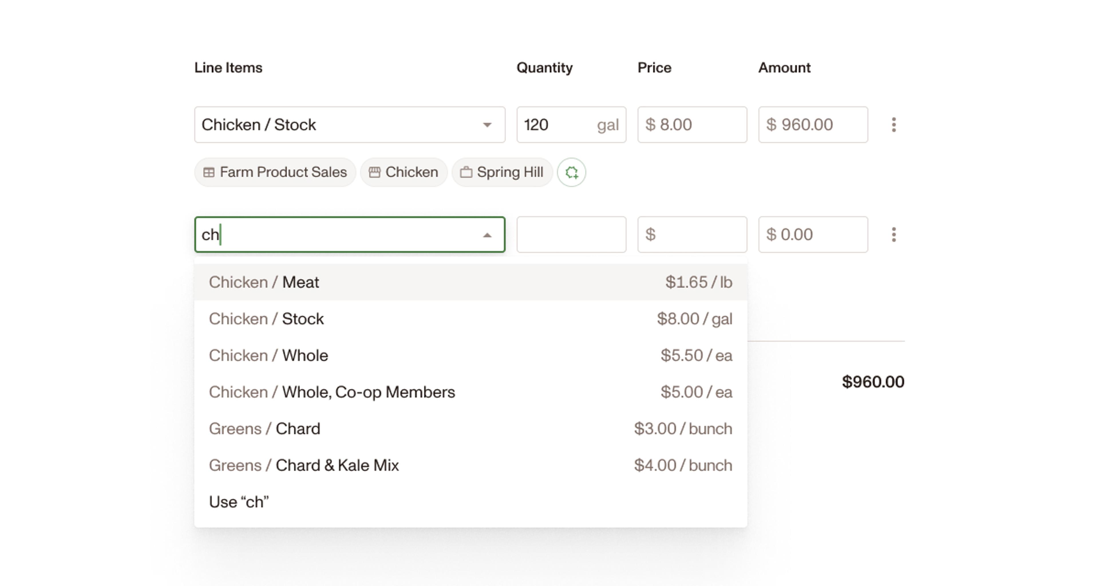 Import and maintain your price list in Ambrook, then add preset items for speedy invoice creation. Item variants will help you set prices and tags for different product subtypes, units, or customers. Wholesalers and utility operators can make pricing and rates consistent across their invoices.