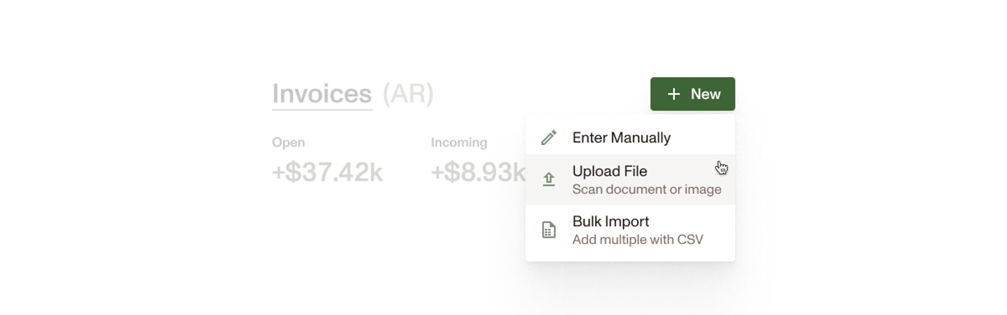 We heard from you that the “Quick Import” panel is confusing. We’re working on new invoice / bill flows that are optimized for creating from scratch, scanning a file, or importing files in bulk.