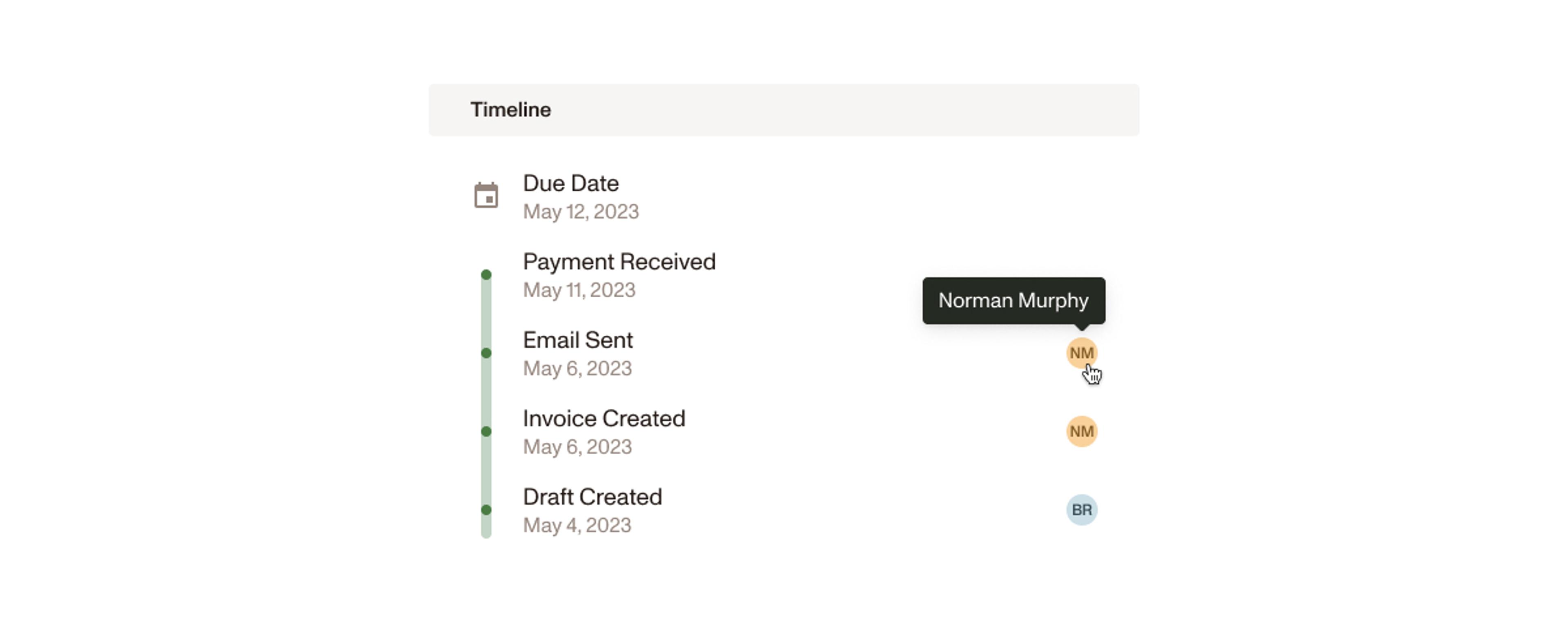 We’re beginning to highlight events related to your bills and invoices, like “created,” “sent,” and “matched.” These will include the when and who of each activity, so you can be confident where each bill or invoice stands.