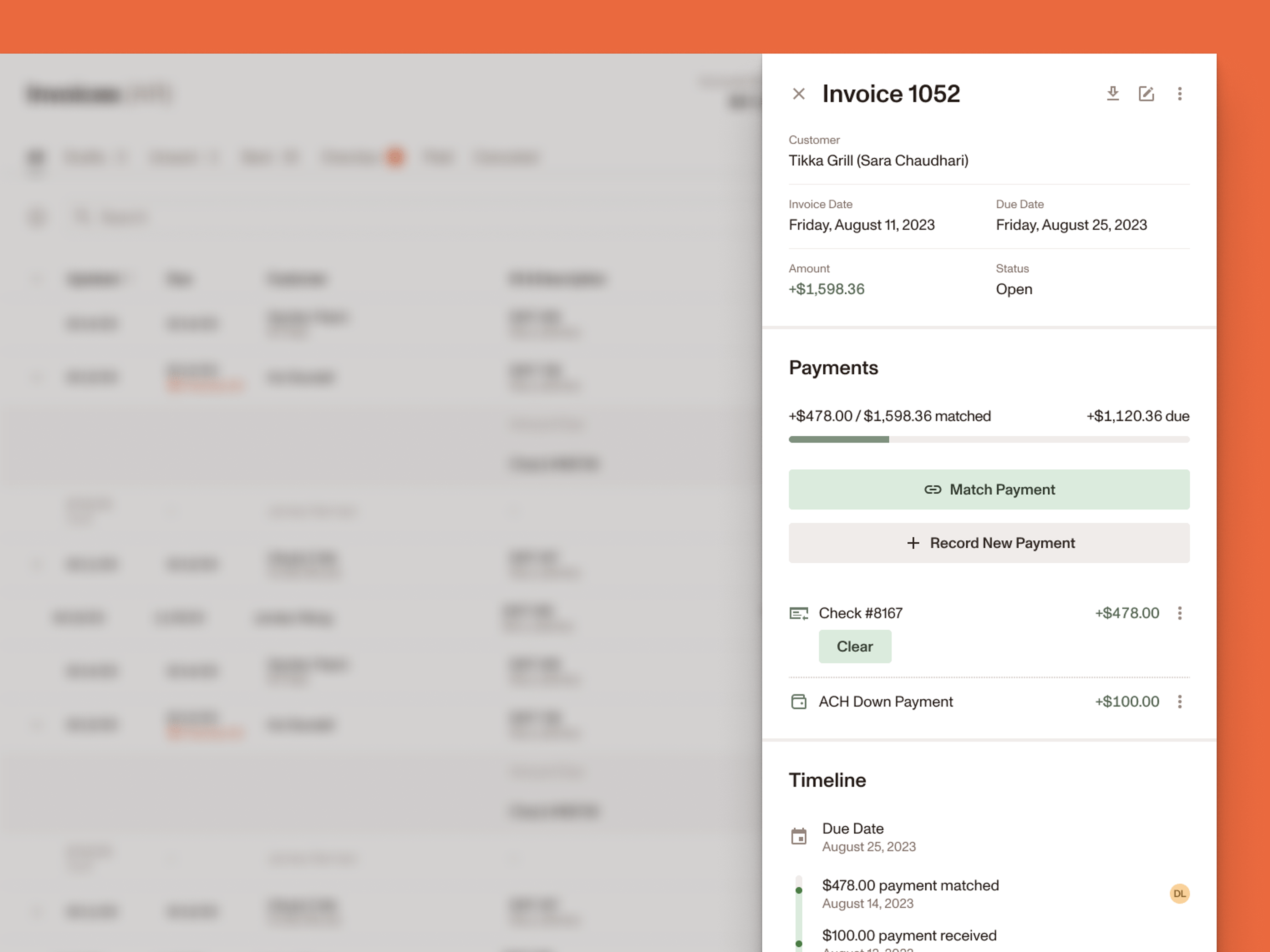 Clicking an invoice or bill to take action on will open the detail page. Danny and I redesigned these to be more consistent and easy to navigate.