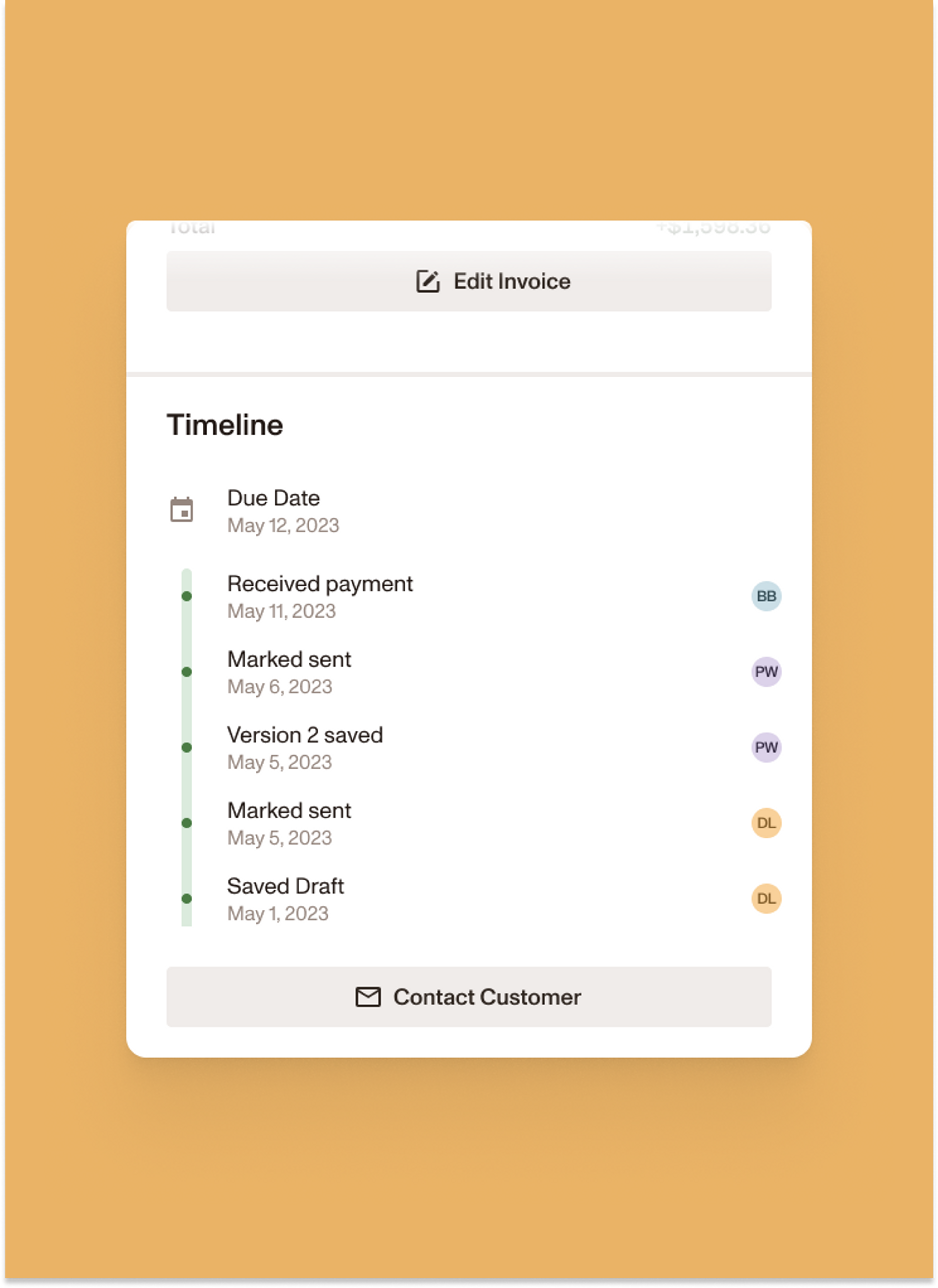 Now you can make edits to an invoice as changes arise – even if you’ve already sent it to a customer. You can view and print the invoice to find any errors before you finalize, and access a full revision history so you have a paper trail in case of any customer miscommunications.