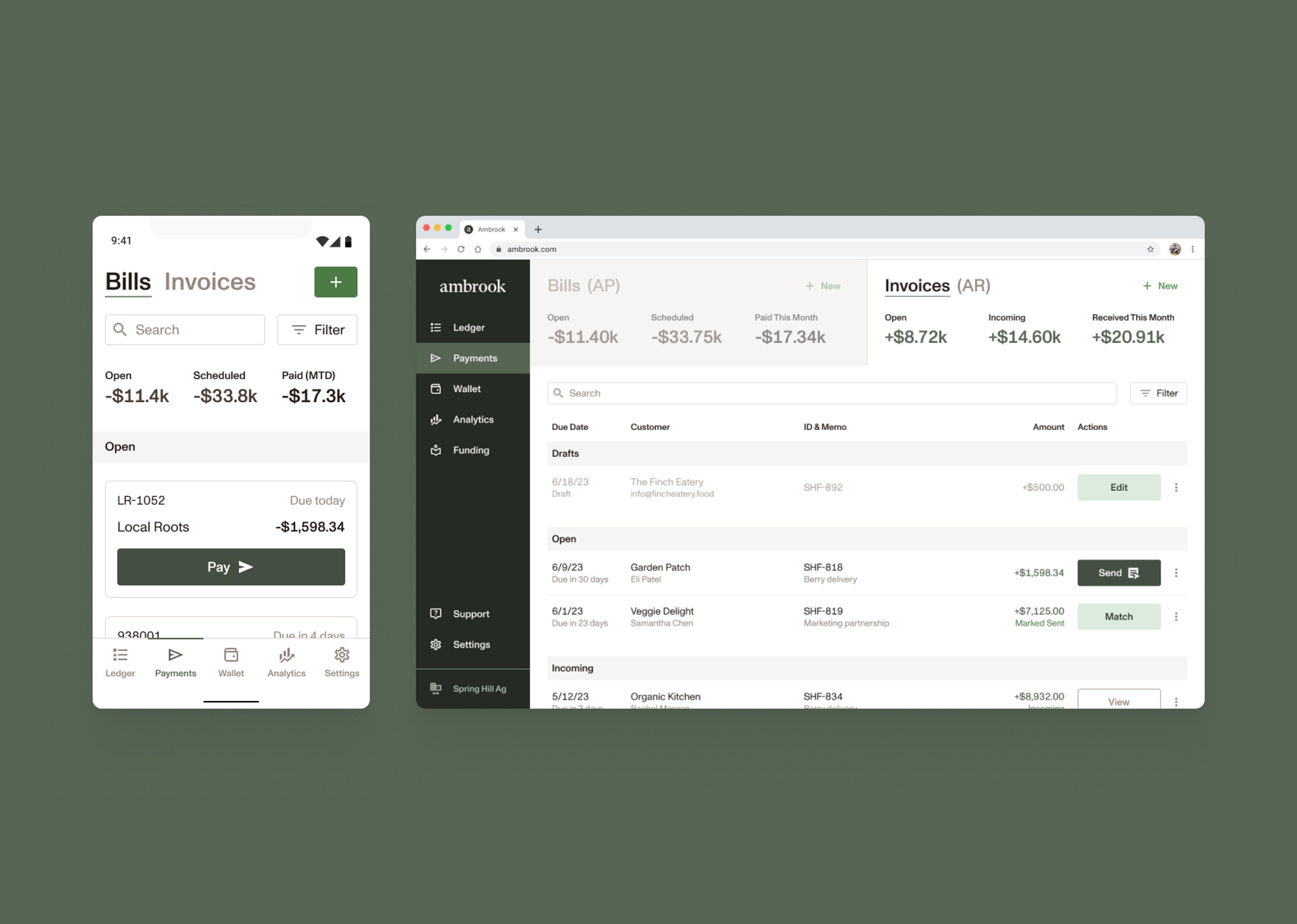 Thanks to a ton of work from Brian, Chris, Jeff, John, and Dan we now display multiple balances for your Ambrook Wallet to give you a more complete picture of your cash flow. Available Balance is the amount of money in your account today after factoring for all payments that have already been initiated but are still in-flight, like a pending transaction. Projected Balance is the amount of money expected to be in your account after factoring for things you expect to happen, like future income or scheduled bill payments.