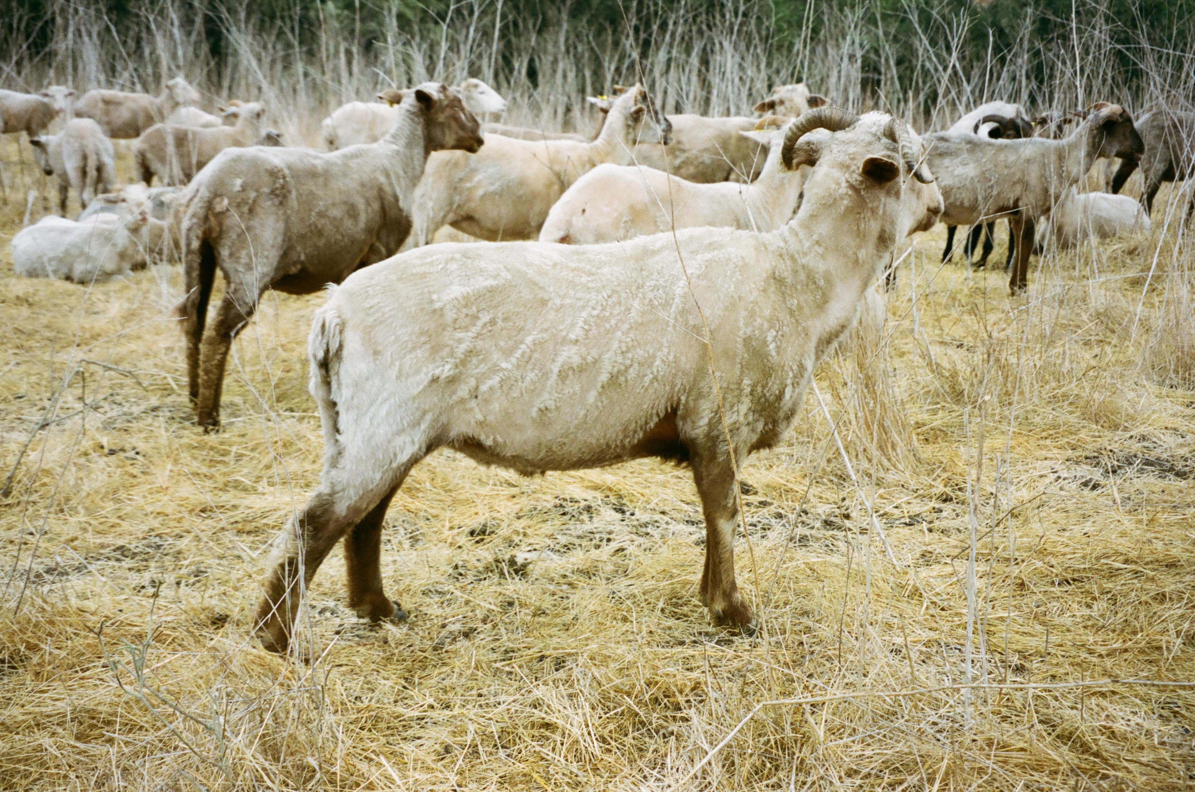 The flock of Navajo-Churro sheep at work grazing. A hearty breed, they thrive in the dry terrain of Santa Maria.