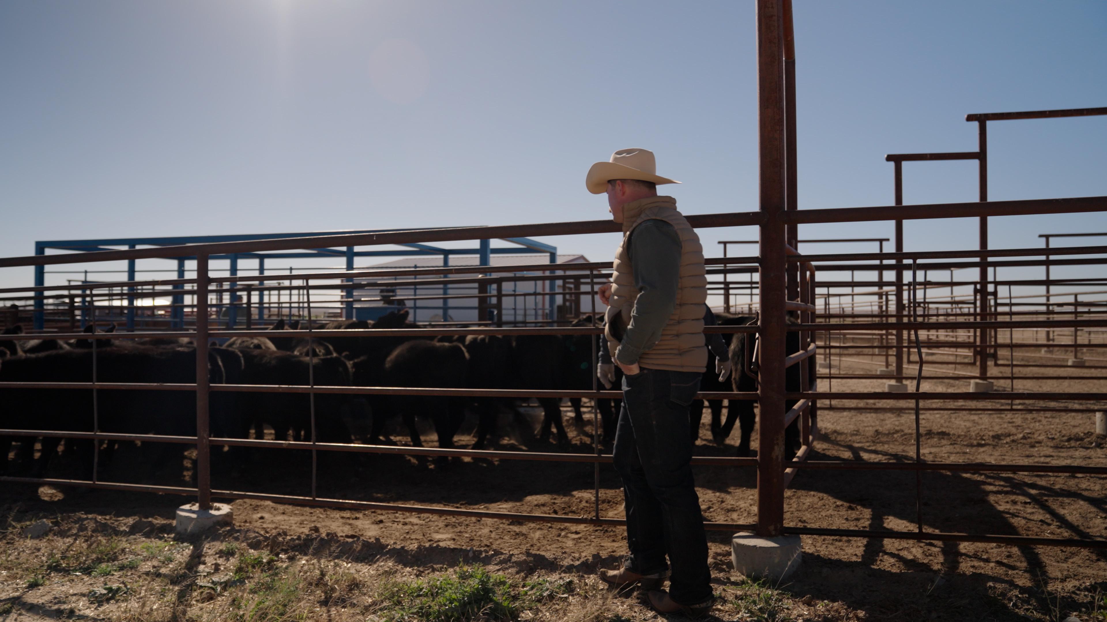 Josh McKinney at McKinney Land & Cattle in the Oklahoma Panhandle, walking through his feedlot operations.