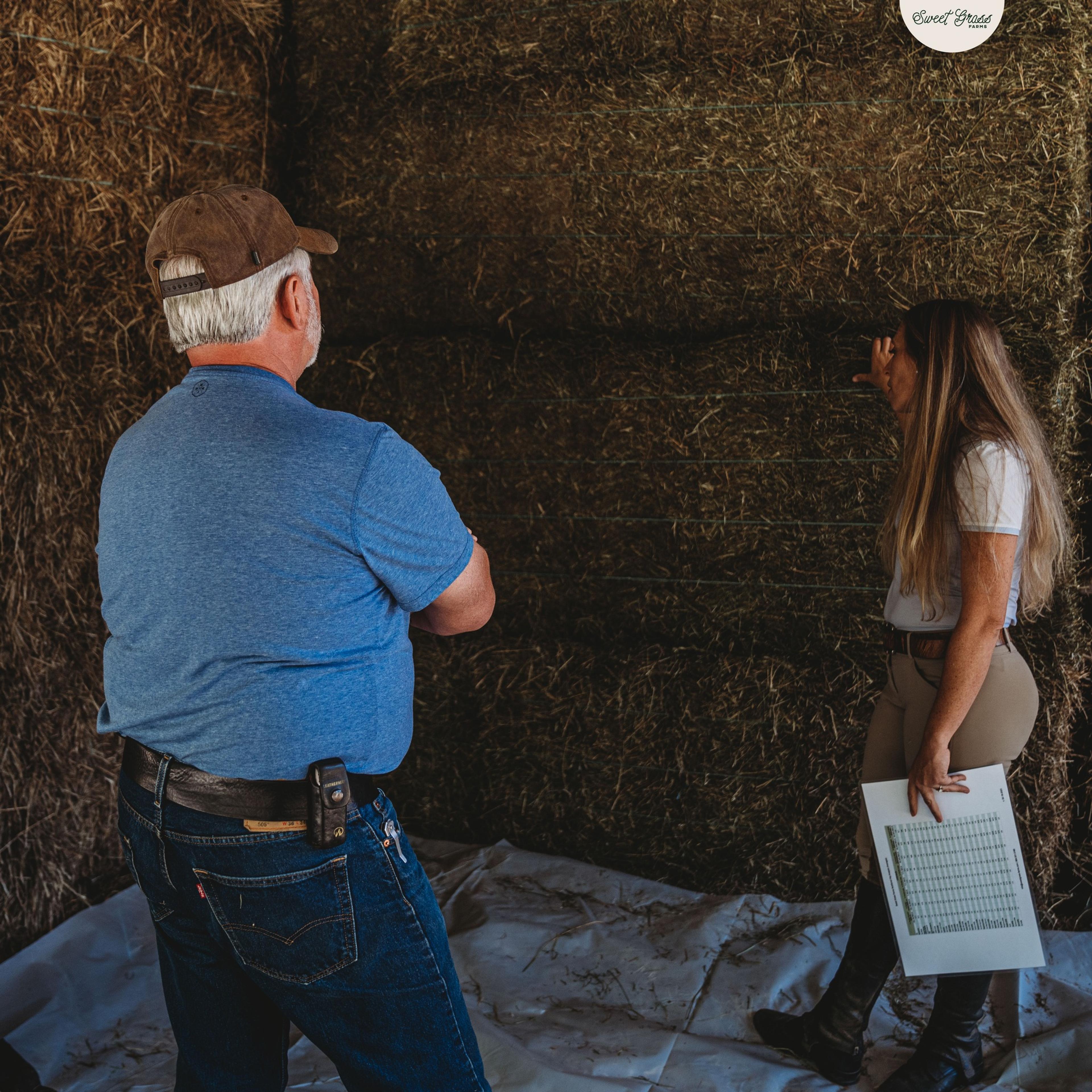 The husband-wife team built Sweetgrass Farms into something unusual in the hay industry: a science-driven operation where every batch of hay is nutritionally tested through Rock River Laboratory. Nicole, who studied cellular molecular biology and was pre-vet before starting the business, applies analytical rigor to equine nutrition consulting.