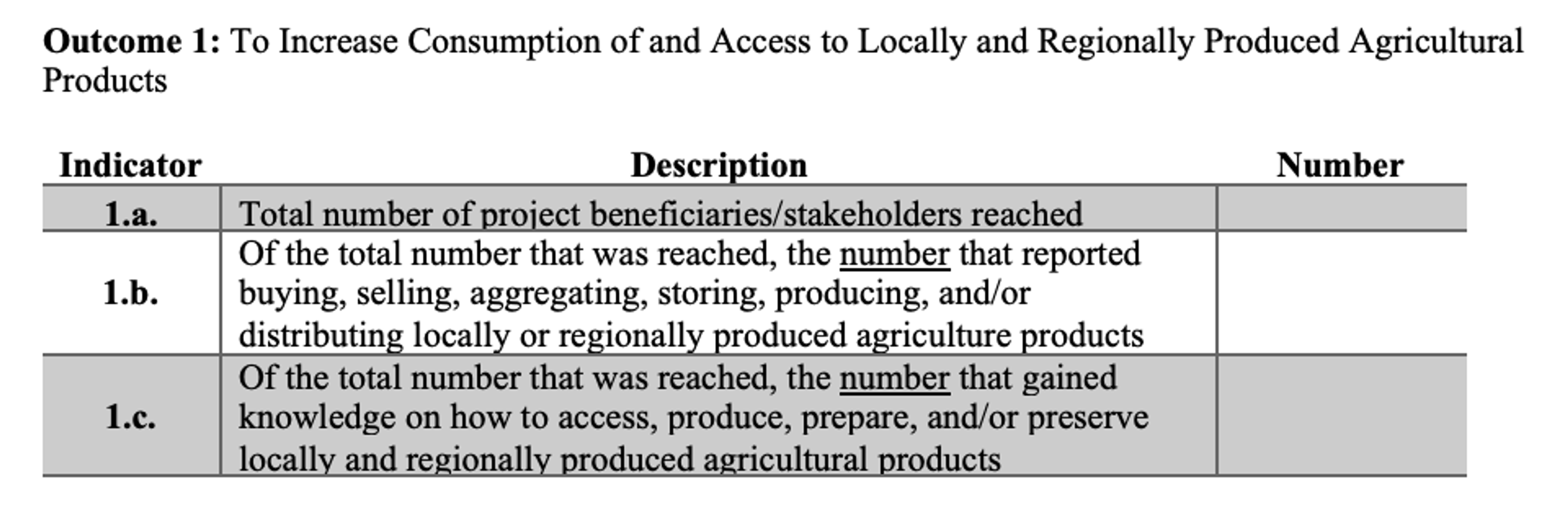 Note Outcome 1: “To Increase Consumption of and Access to Locally and Regionally Produced Agricultural Products”