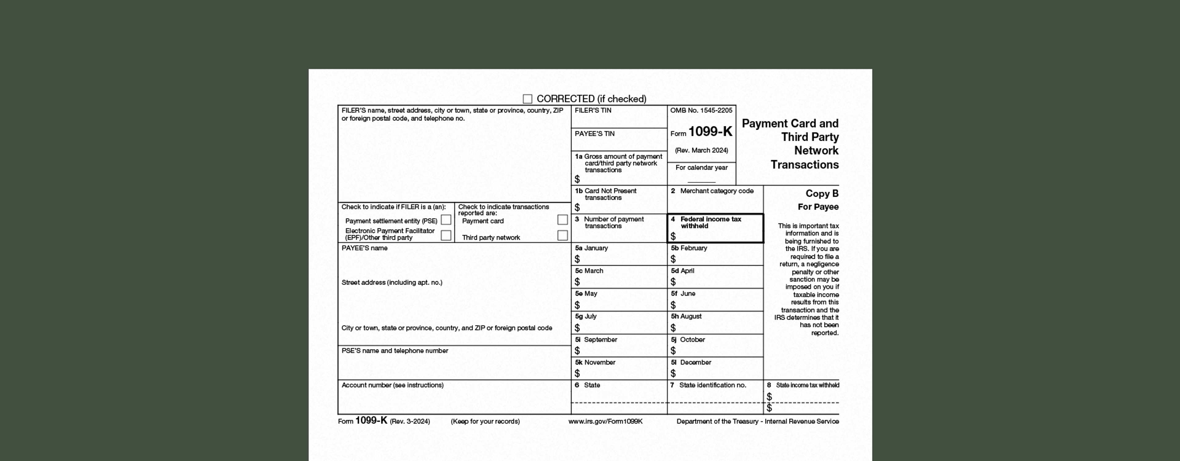Every Form 1099-K you receive includes:
