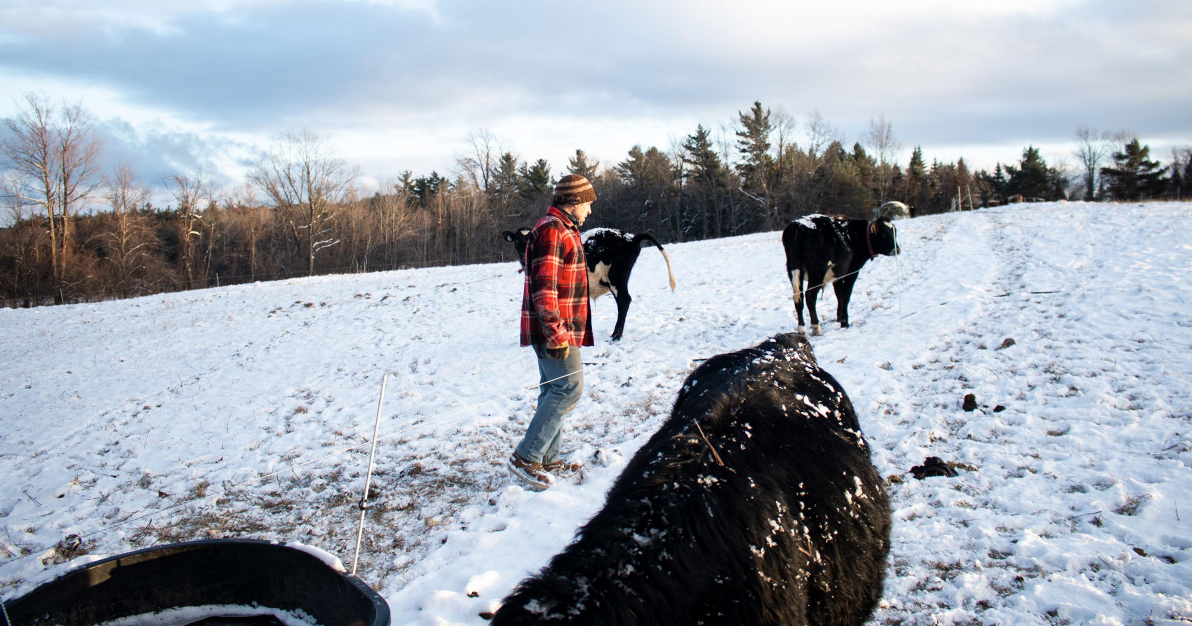 It’s a sunny March afternoon and unseasonably warm in the High Peaks region of the Adirondacks. Farmer Adam Wilson is sipping tea at the wooden desk in his tiny house, and reading out loud from a book called Remembering Peasants: A Personal History of a Vanished World. A large window looks out across a soggy field and the bare vegetable garden to a grassy slope where a small herd of cows is sunning. It’s been three years since Wilson signed the deed to Sand River Community Farm – purchased in one lump sum of half a million dollars.