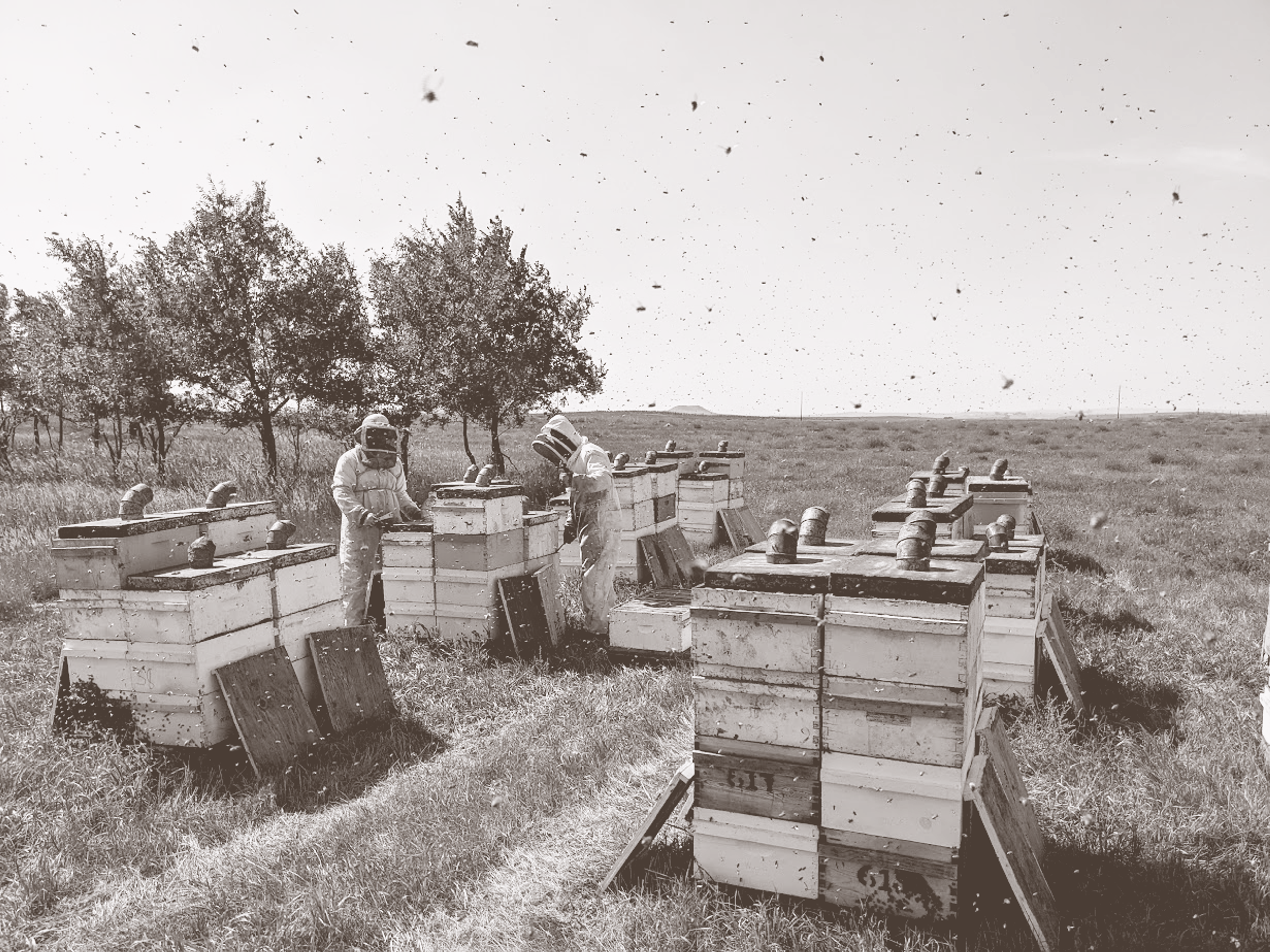 Standing on the edge of a newly blooming almond grove in Southern California, Chris Hiatt observes his honeybees dip and flit around the soft white flowers that coat the season’s latest crop. Soon, the pollination cycle will be complete, and Hiatt and his nearly 20,000 hives will pack up and move to Washington for apple season, then on to North Dakota to harvest summer honey.