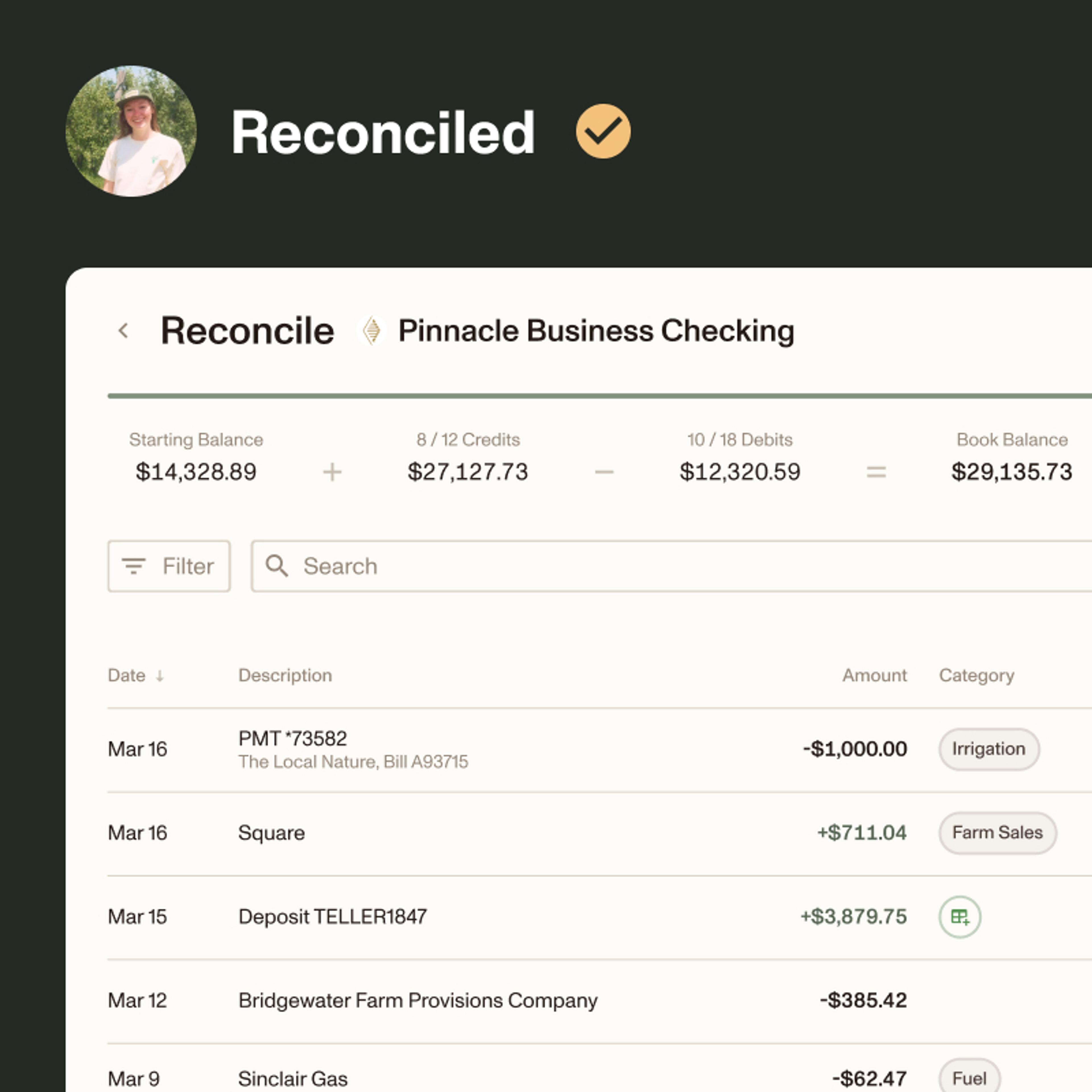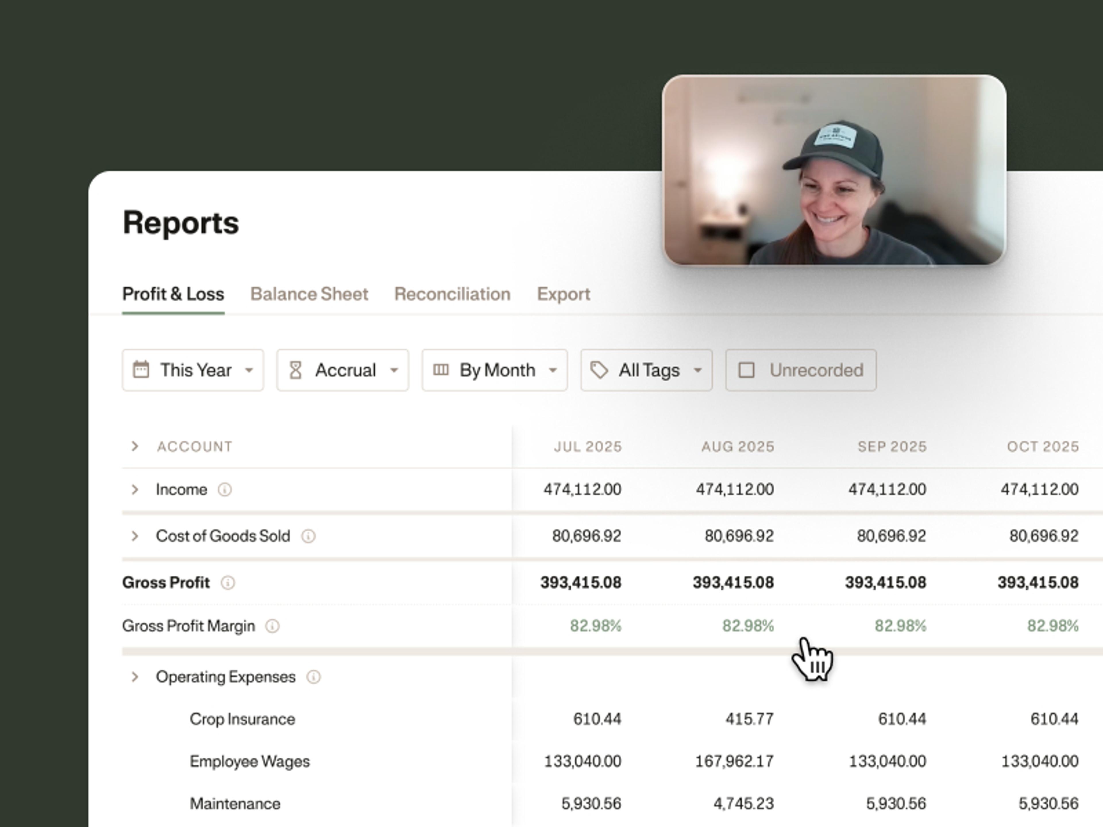 Our team of ag-savvy experts imports your transactions and reconciles your accounts — so your books stay accurate and up to date.