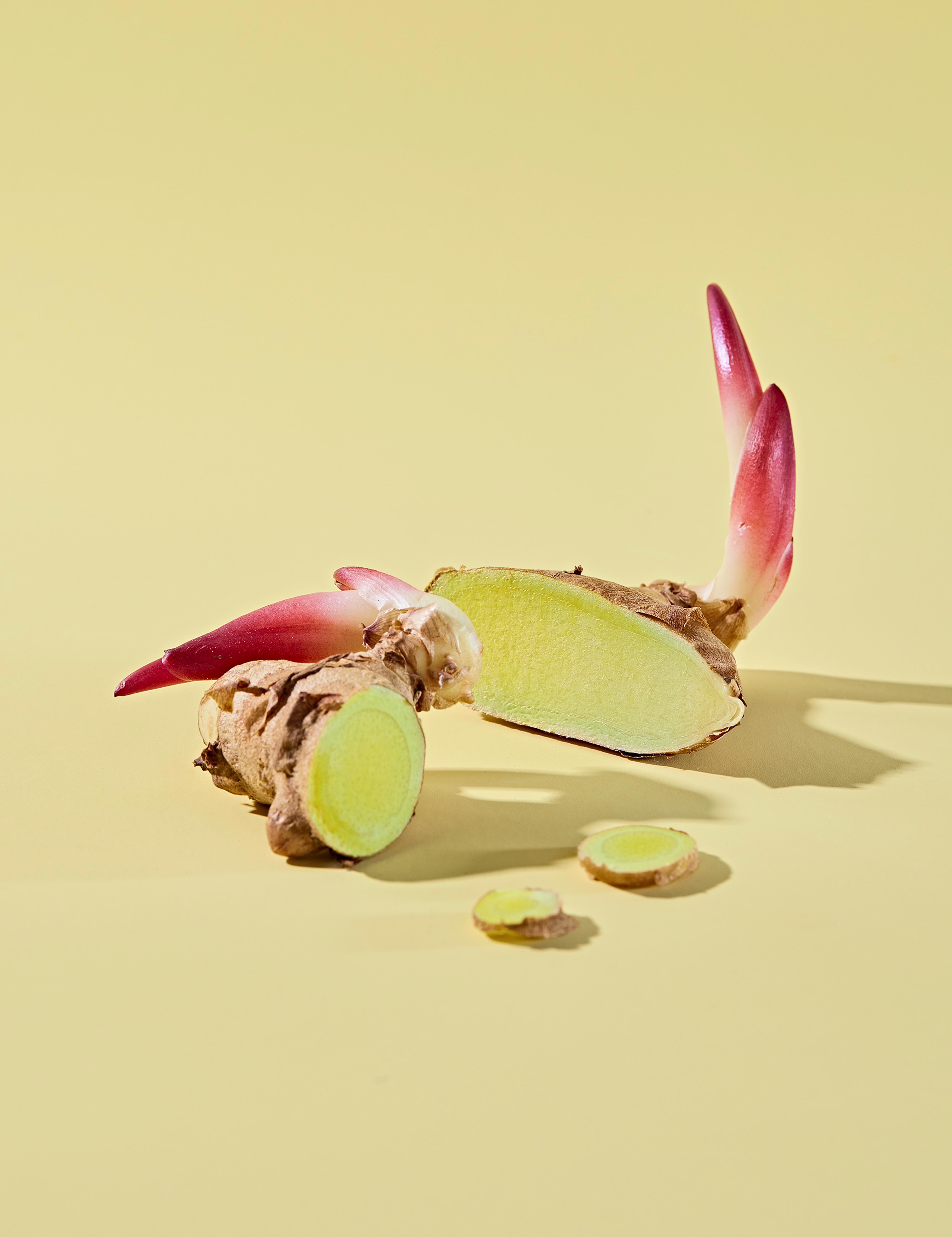 And turmeric is an experience. It comes out of the ground as a quirky, dirt-laden stem that resembles a rock with arms, but when sliced open, a mesmerizing, geode-like interior is revealed. The flesh of the red and yellow varieties bear a squash-like hue, while the more exotic black and blues evoke a watercolor of the night sky. And the green turmeric appears downright radioactive.