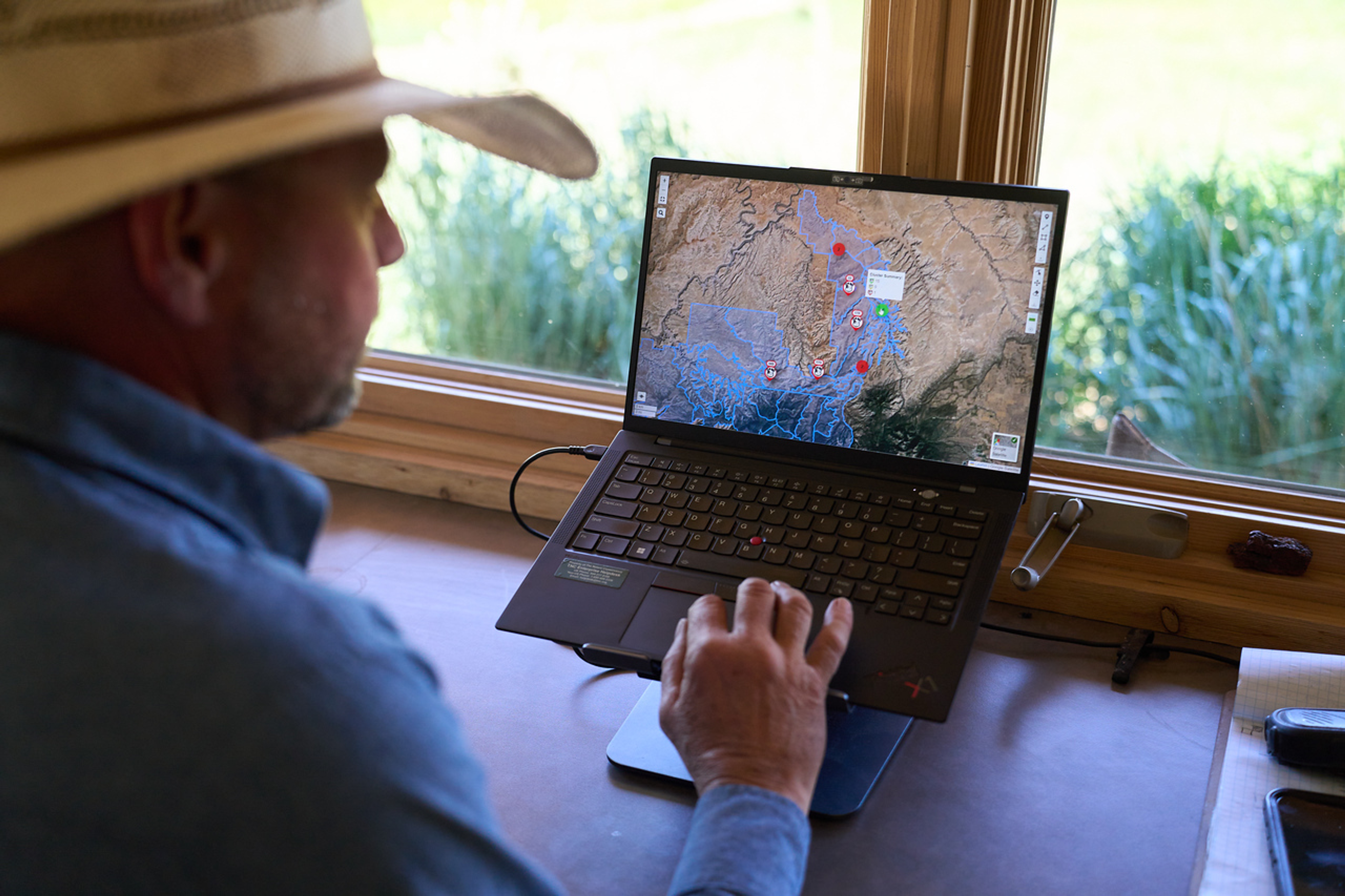 Matt Redd checks the location of his cattle on the USDA precision ranching online dashboard.