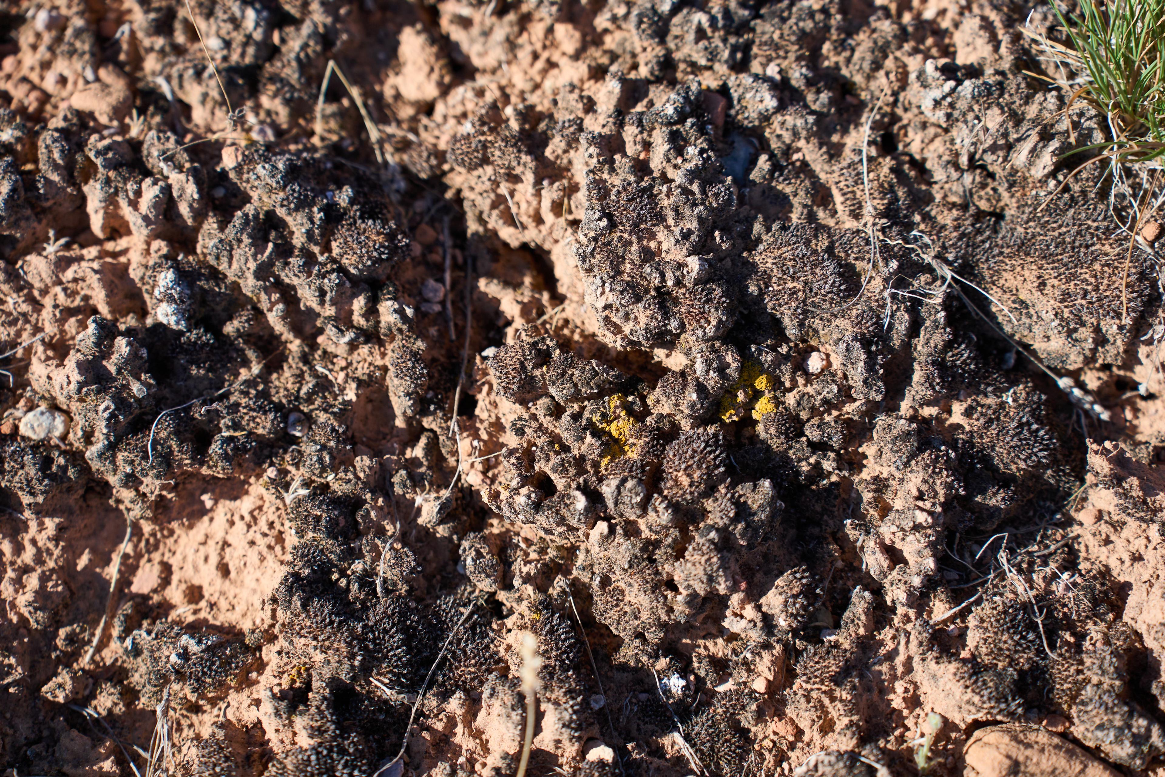 Biocrusts, or biological soil crusts, are collections of cyanobacteria, lichens, mosses, and other organisms that cover the fine, sandy soils of the Colorado Plateau. Collectively, they form layers — crusts — across the desert floor harboring much needed nutrients and moisture for desert plants. Biocrusts essentially hold these desert ecosystems together, preventing erosion and dust. Without them, the landscape would be covered in sandy dunes, and rangeland cattle grazing would be impossible.