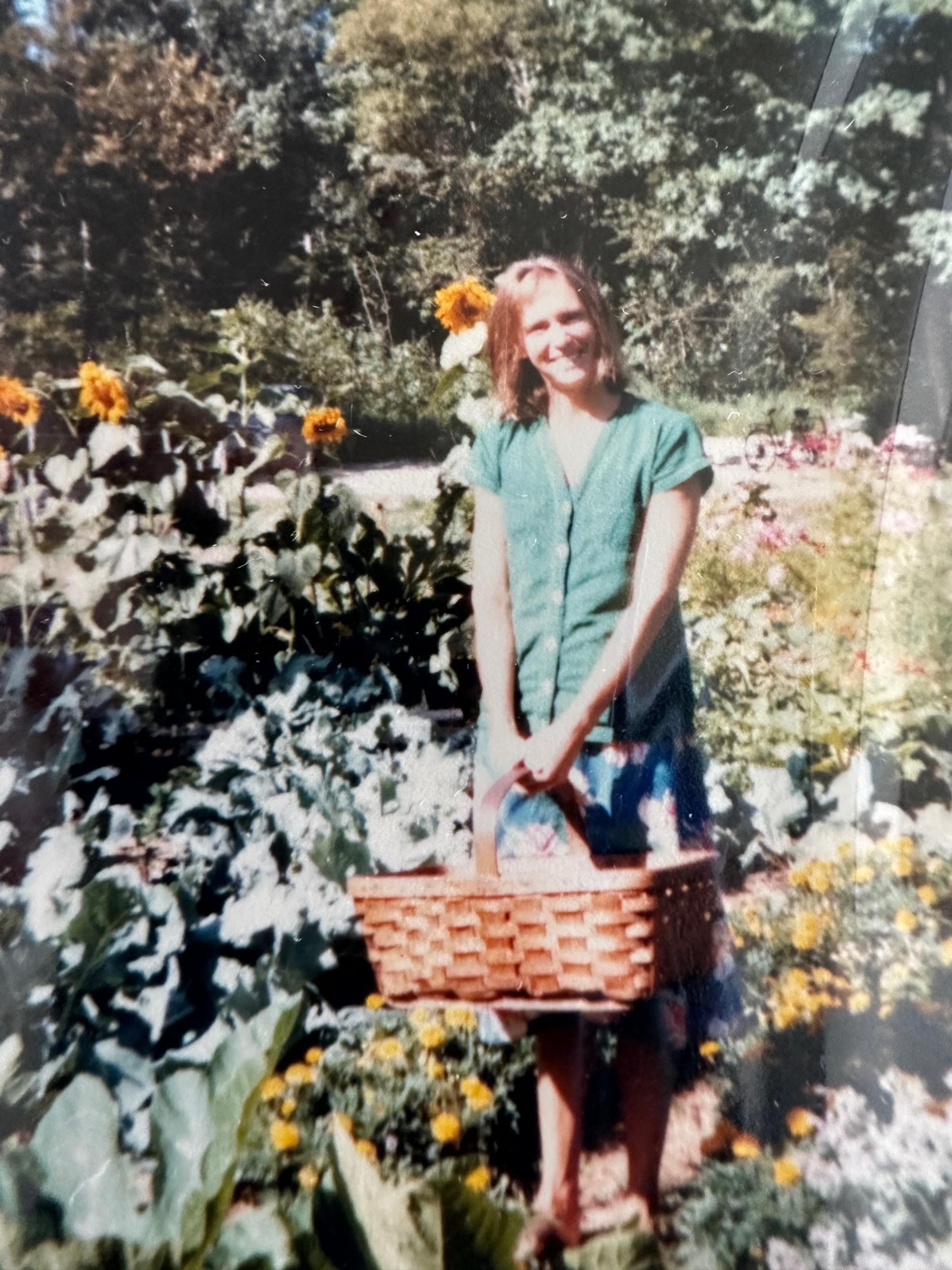 Lie-Nielsen's mother poses with sunflowers in her garden in the 1970's.