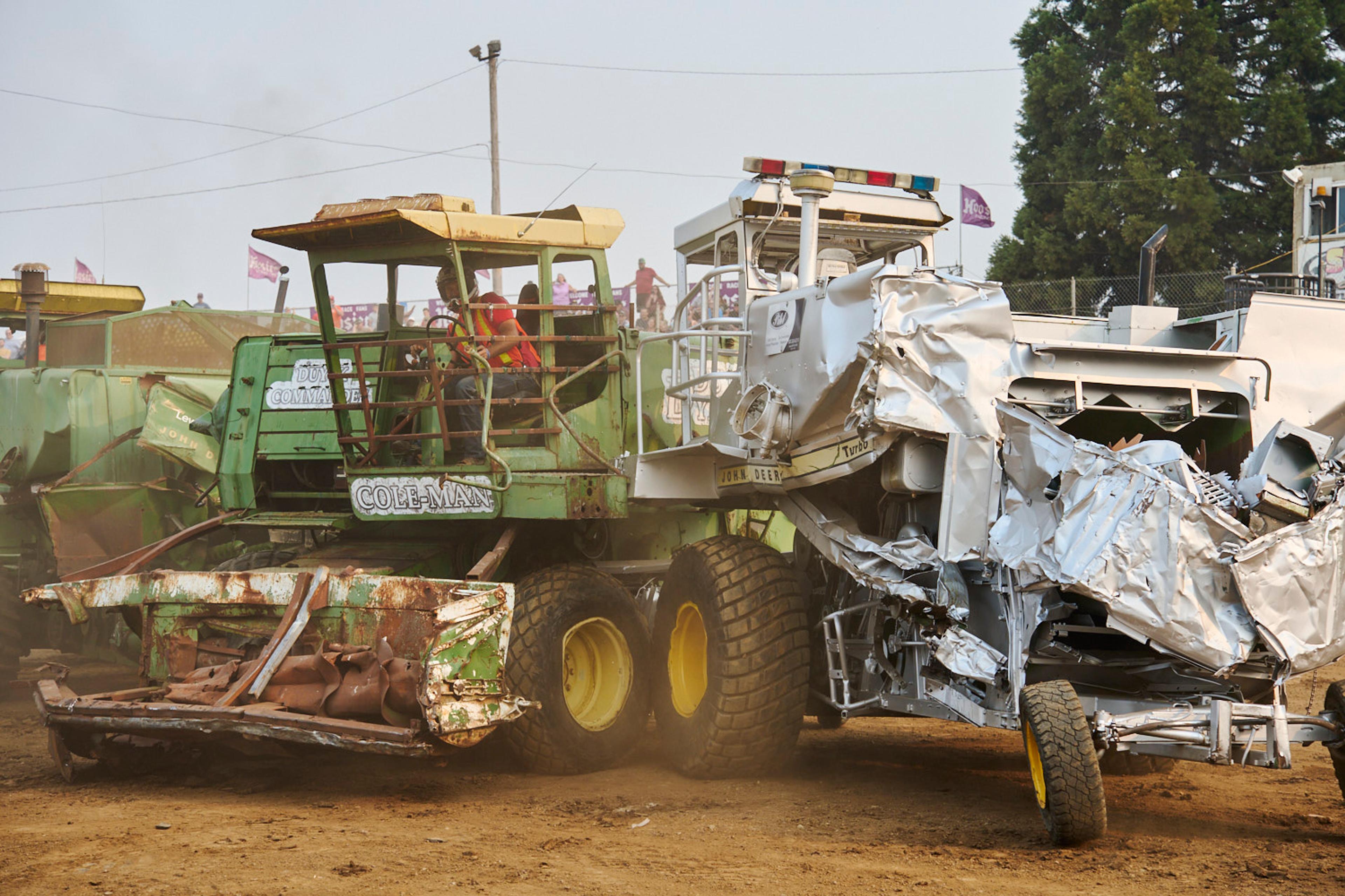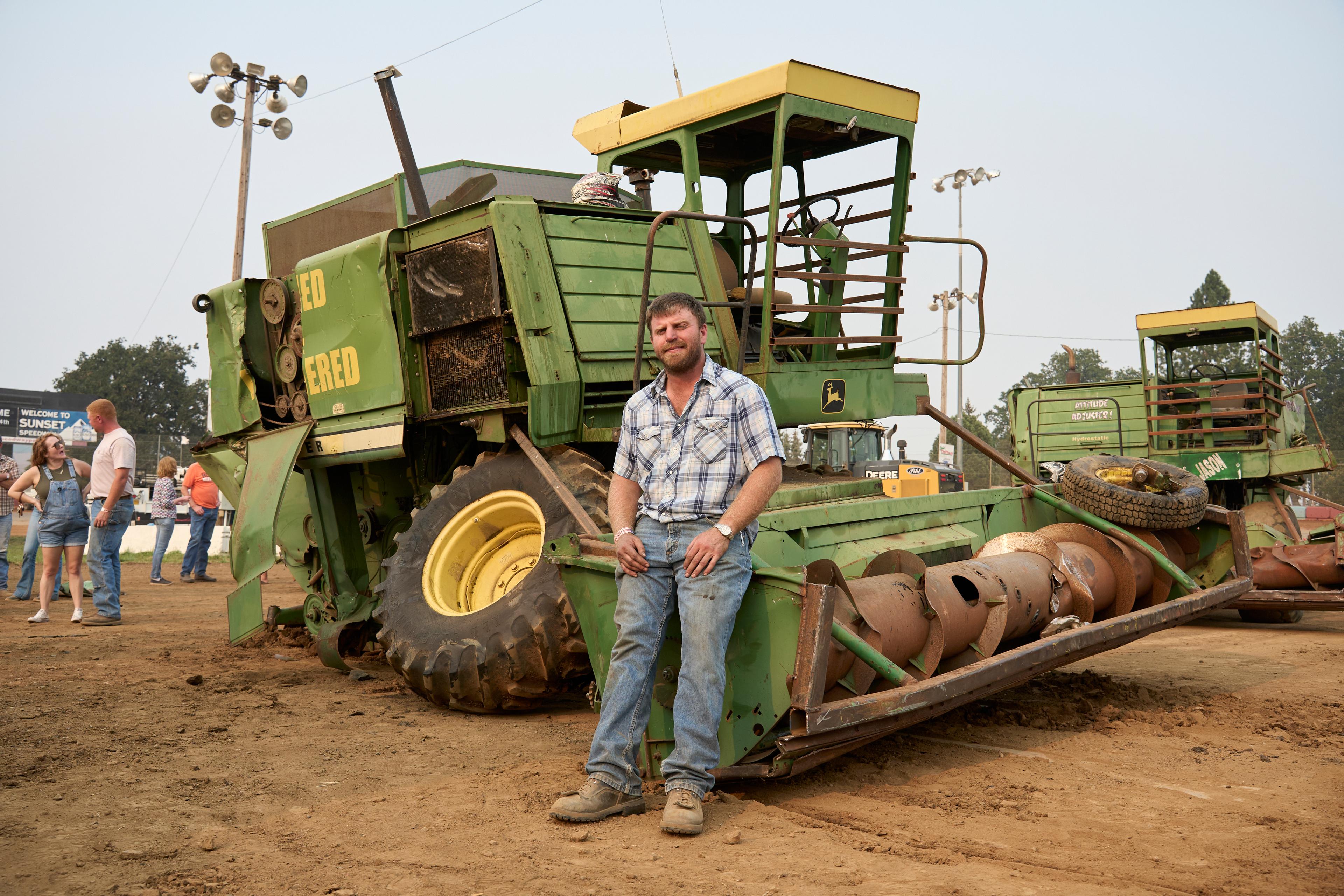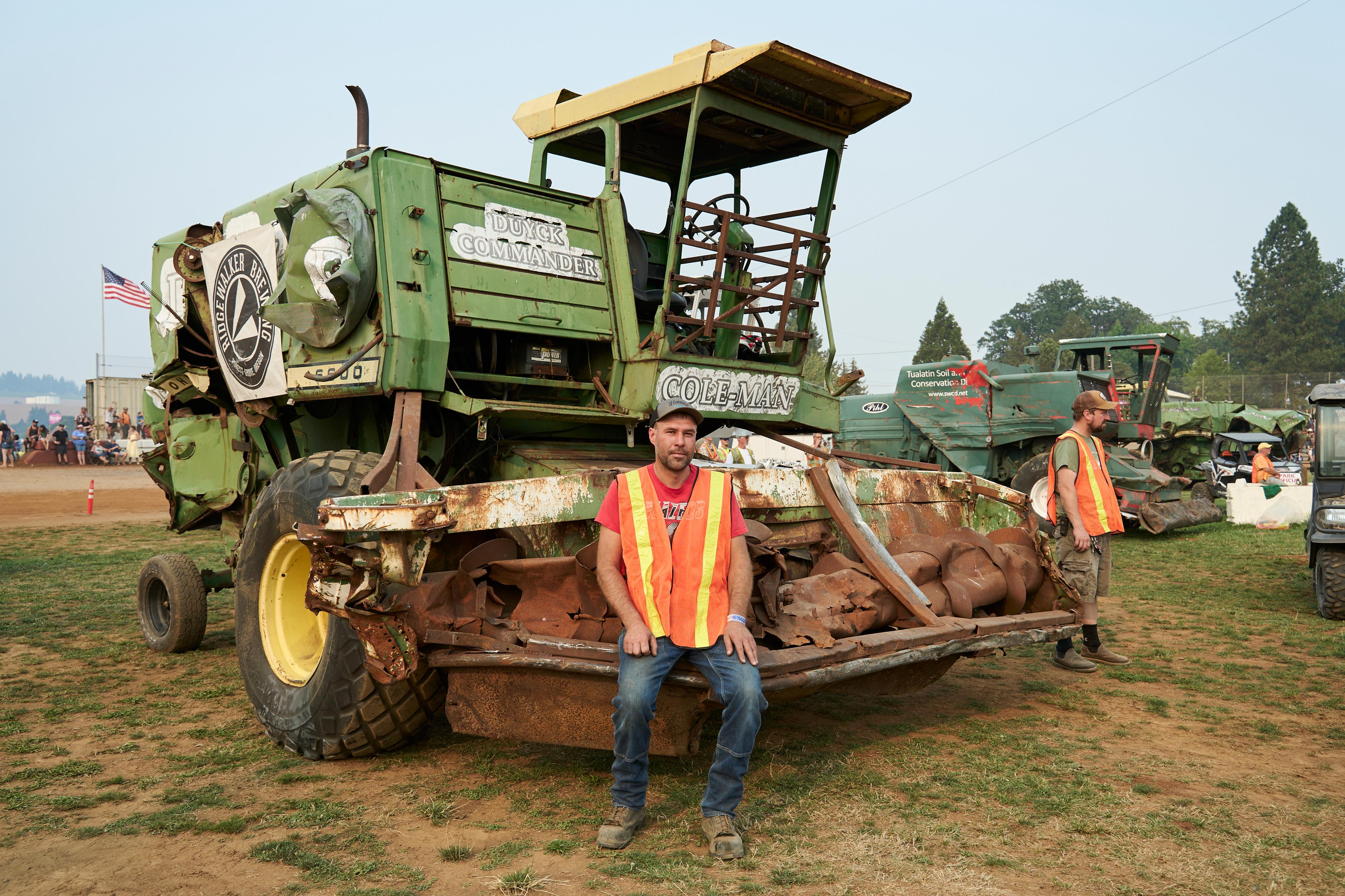 The signature event in tiny Banks, Oregon, is a demolition derby with a twist — instead of cars, drivers go head to head with massive farm equipment.