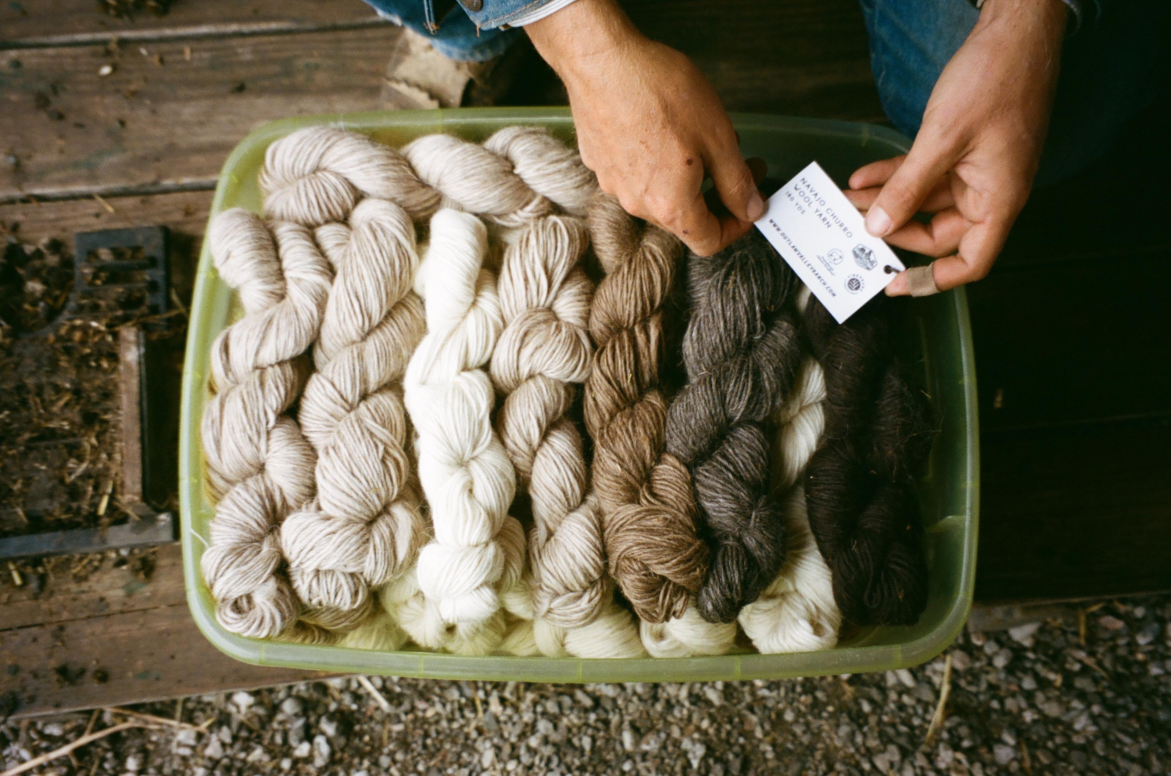 Outlaw Valley Ranch yarn comes in an assortment of natural colors. Once sheared, the wool is cleaned and carded at Morro Fleece Works and then spun into yarn at Valley Oak Wool Mill. It is processed without dyes, bleaches, or chemicals.