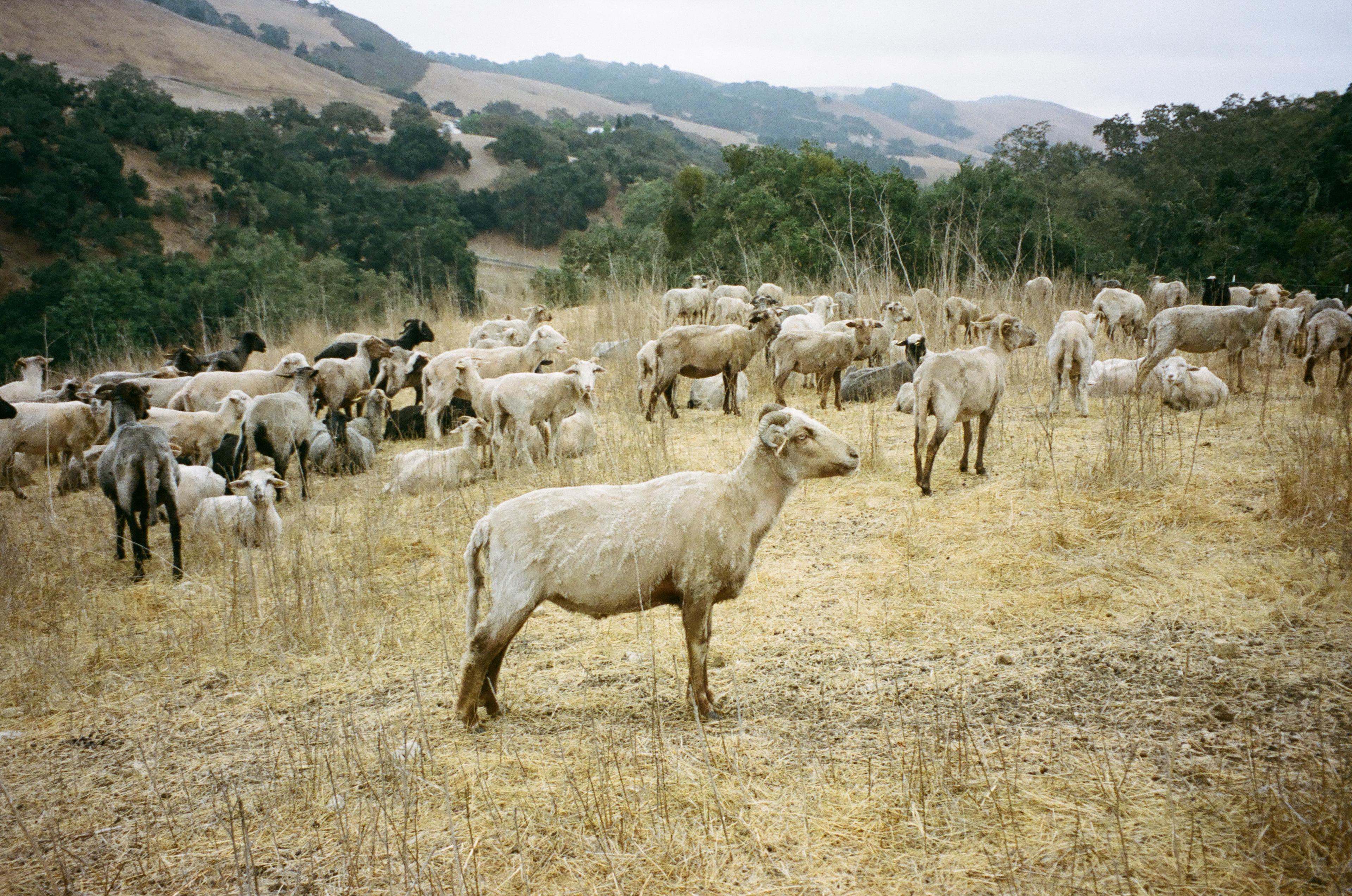 At Outlaw Valley Ranch, first-generation ranchers Alex and Kelsey Karol are putting into practice regenerative ranching methods and seeing the land respond. Settled on 346 acres in hilly Santa Maria, California, about three hours up the coast from Los Angeles, they raise 100 percent grass-fed, heritage cattle and sheep, producing meat, wool, and sheepskin. They rotationally graze their Navajo-Churro sheep, allowing for the animals to trample vegetation and manure into the soil surface with their hooves.