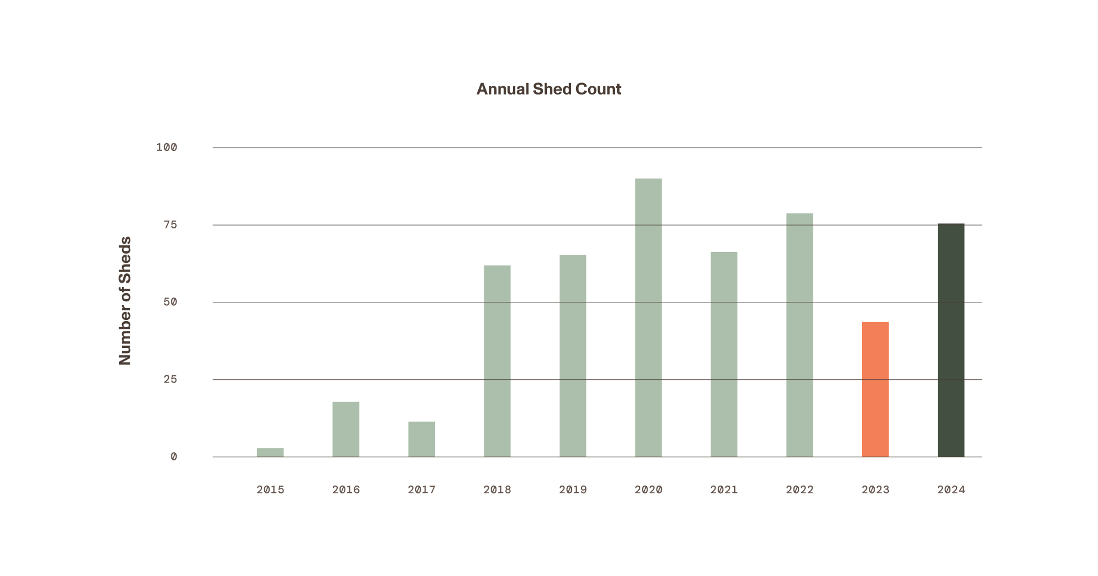 2022 was the year of spraying the fields 2x and tilling them once. 2023’s sheds were the result of the lack of food in 2022, and 2024’s sheds show the results of the first year of regenerative ag.